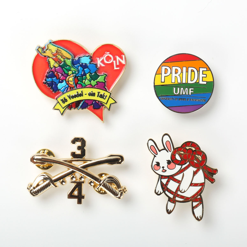 مواد عالية الجودة: نحن نفخر باستخدام أفضل المواد فقط لدبابيس التلبيب المخصصة لدينا.اختر من بين مجموعة متنوعة من خيارات المعادن ، بما في ذلك الذهب والفضة والنحاس والنحاس الأصفر ، للتأكد من أن دبوسك يتمتع بالشكل والمظهر المثاليين.تتميز دبابيسنا أيضًا بطبقة متينة ومقاومة للخدش ، مما يضمن بقاء التصميم الخاص بك نابضًا بالحياة وسليمًا لسنوات قادمة.